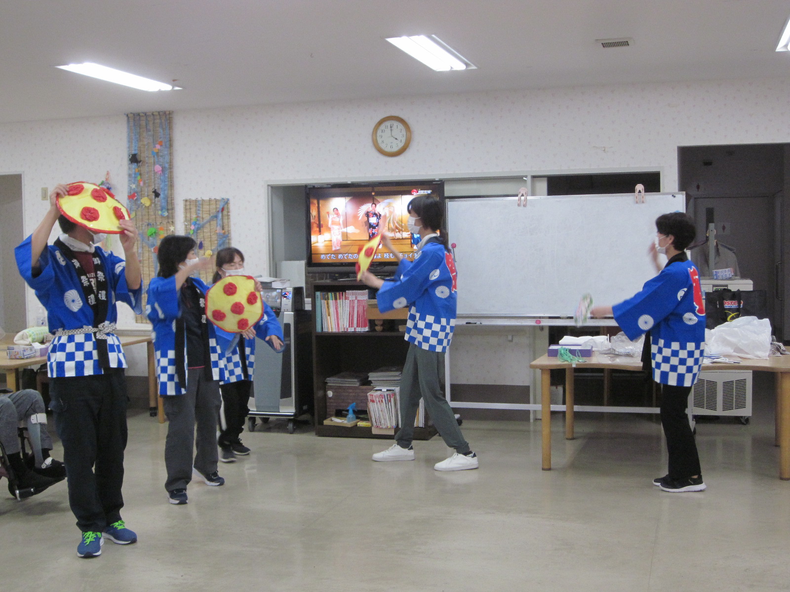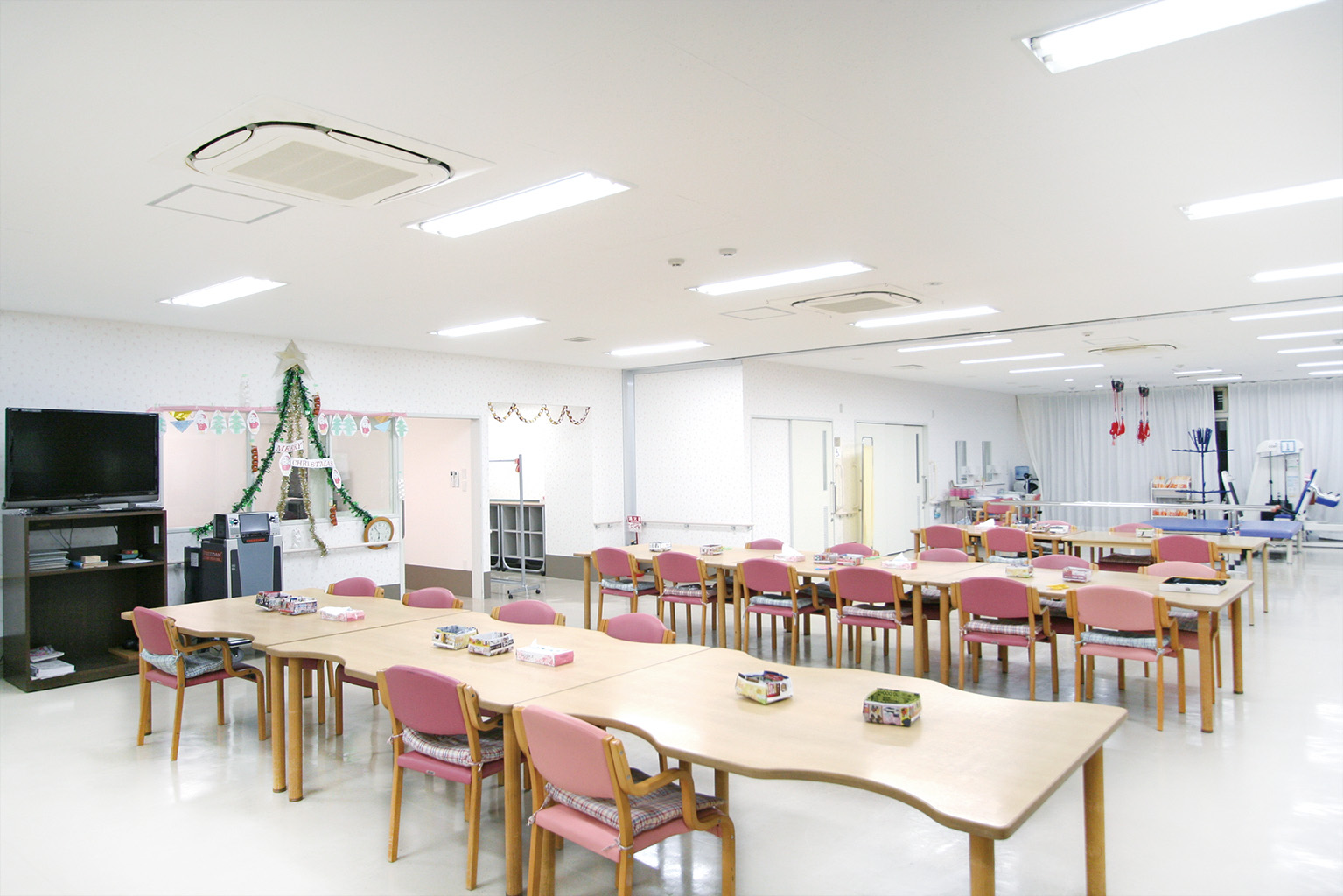 ゆったりとしたフロアで過ごして頂き、入浴、運動、レクリエーション等をして頂きます。季節により行事も開催しております。