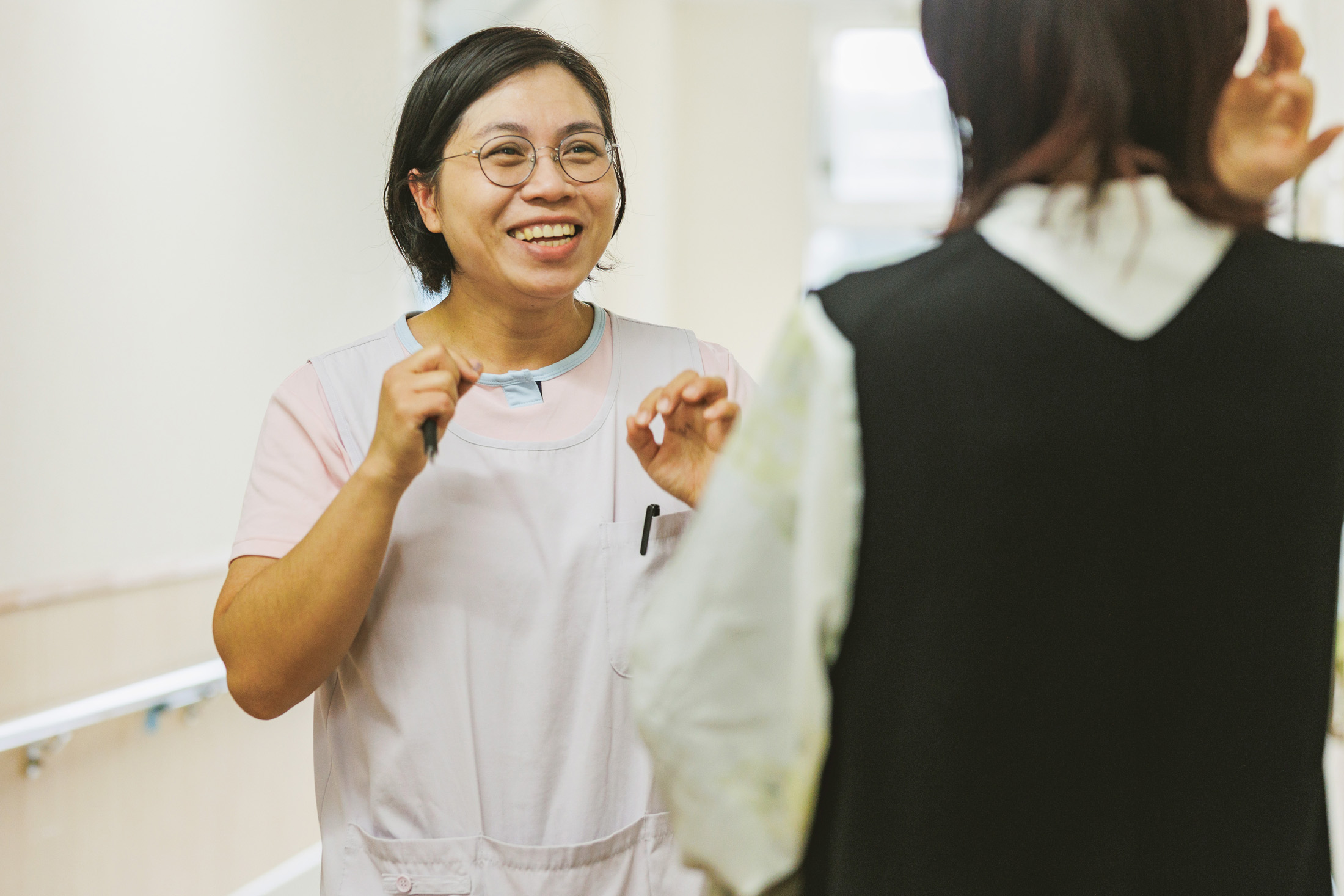 ・天理市唯一の介護老人保健施設の特徴として、頂戴した相談には早急に対応します。入所審査に必要な書類が届き次第、1週間以内におおよその入所日をお伝えします。奈良東病院ふくめグループ内での対応を検討させていただきます。